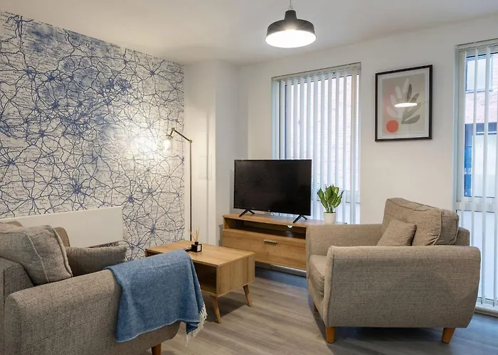 El Spacious Manchester City Condo - Next To AO Arena - Local Transport Links - Parking de 700 m², situado a unos 25 minutos a pie del Museo de Mánchester, ofrece Wi-Fi tanto para estancias de negocios como de ocio. El apartamento dispone de una terraza y se encuentra a un corto paseo de la Destilería de la Ciudad de Manchester.
